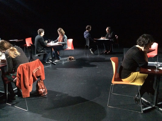 Des binômes, constitués de manière aléatoire, communiquent en silence et par écrit (Studio théâtre à Nantes, 2015 ; Centre Pompidou, 2018 ; musée Carnavalet 2021)